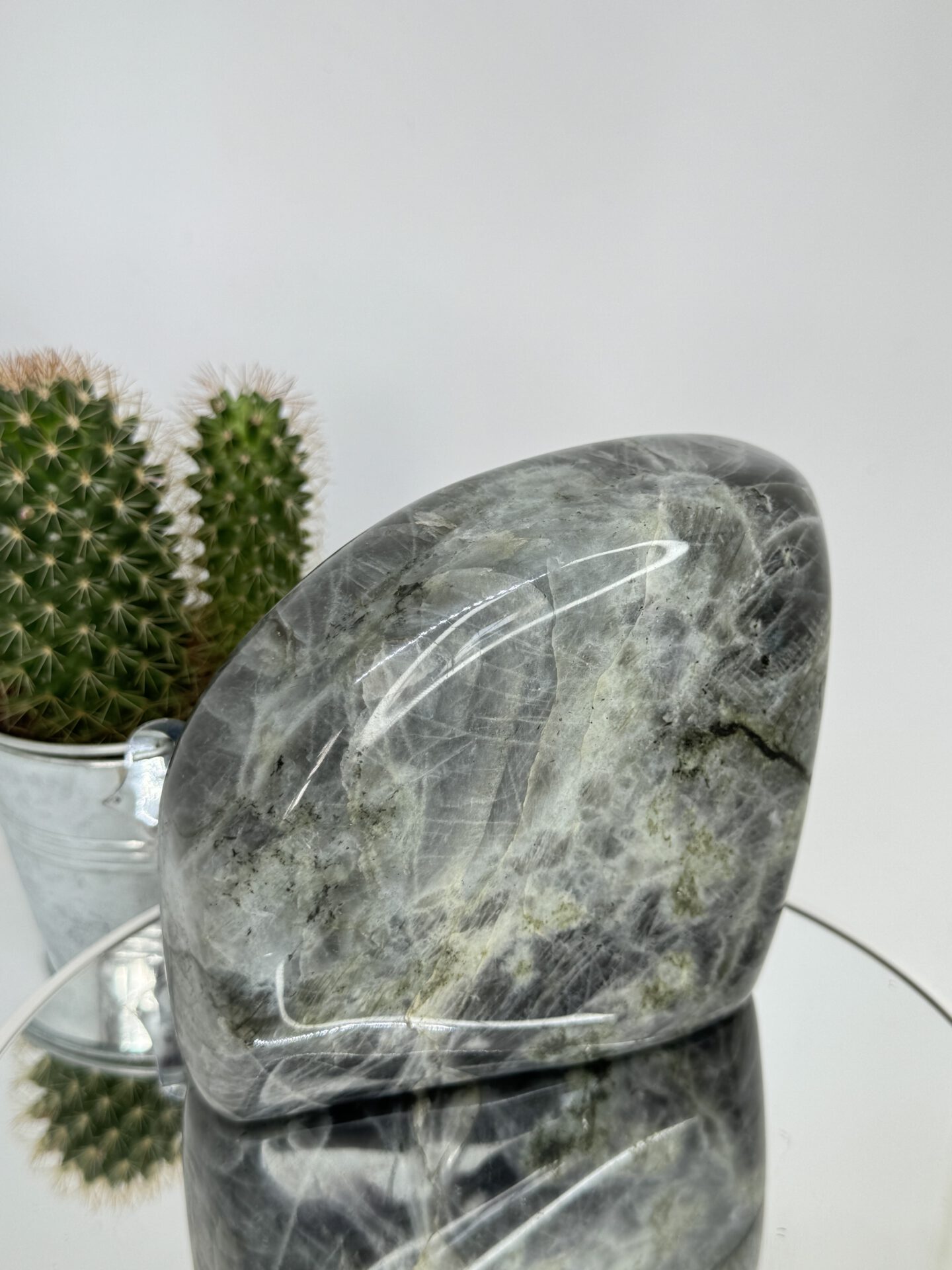 Top kwaliteit paarse labradoriet met de hand geslepen sculptuur.